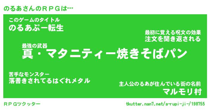 | 2回繰り返すあだ名 | 『のるのる』『ののるる』『ぬらぬら』 |