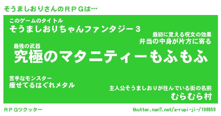 | ヒーロー風カッコイイあだ名 | 『スーパーソウマシオリ』『魔戒騎士ソウ』 |