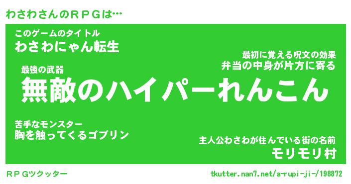 | ファンタジー風あだ名 | 『ワサフェル』『エターナルワサワー』 |
