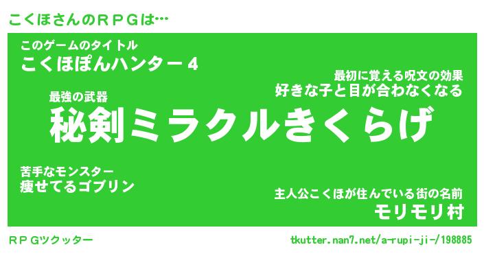 | ファンタジー風あだ名 | 『コクフェル』『エターナルコクホー』 |