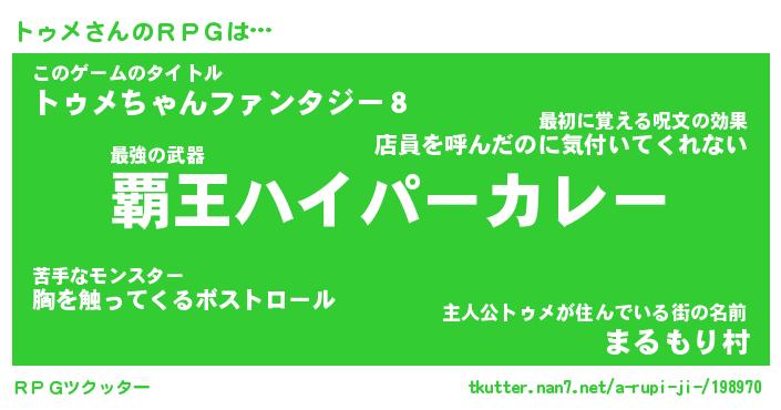 | ヒーロー風カッコイイあだ名 | 『スーパートゥメ』『ウルトラトゥメマン』 |