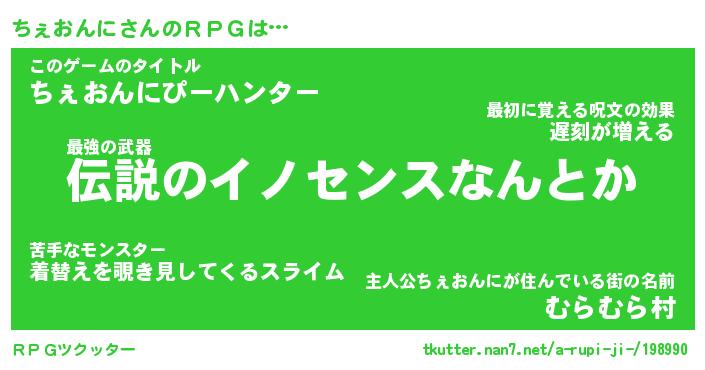| 男性向けラノベタイトル風あだ名 | 『ちぇおんにの憂鬱』 |