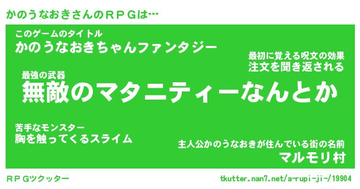 | 男性向けラノベタイトル風あだ名 | 『カノウナオキアートオンライン』 |