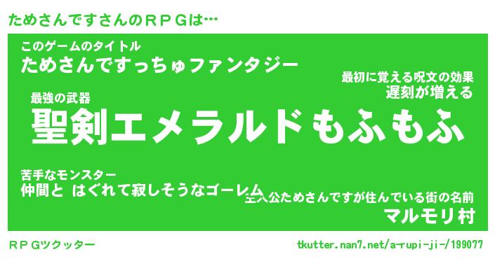 | 胡散臭い通販商品みたいなあだ名 | 『必ず成功する霊験あらたかなお札…その名も「ためさんです」』 |