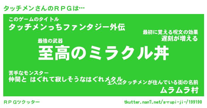| 男性向けラノベタイトル風あだ名 | 『タッチメンアートオンライン』 |
