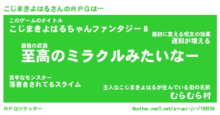 | 男性向けラノベタイトル風あだ名 | 『コジマキヨハルアートオンライン』 |