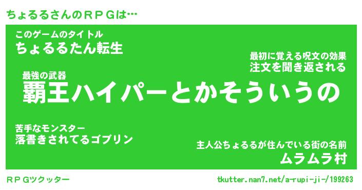 | 男性向けラノベタイトル風あだ名 | 『チョルルアートオンライン』 |
