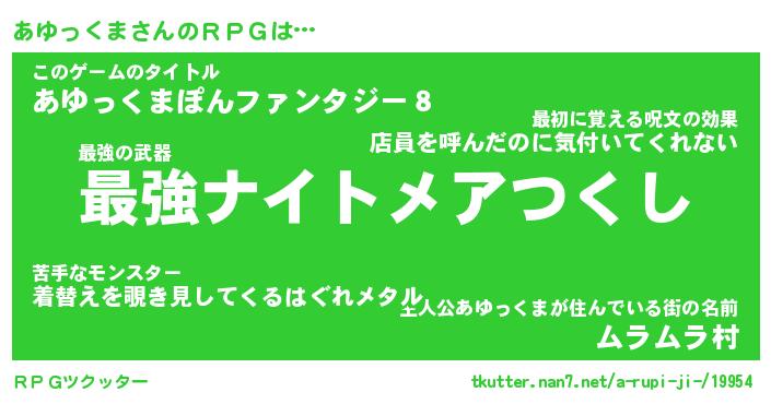 | 伝説のあだ名 | 『不死鳥のスナイパーあゆっくま』 |
