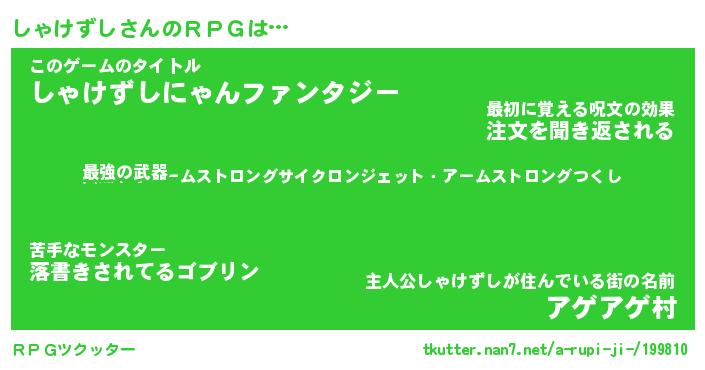 | 男性向けラノベタイトル風あだ名 | 『シャケズシアートオンライン』 |