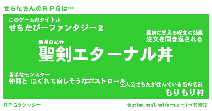| 男性向けラノベタイトル風あだ名 | 『せちたの憂鬱』 |