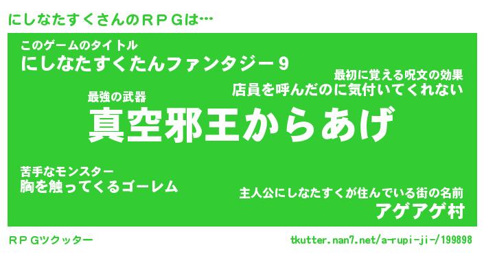 | 男性向けラノベタイトル風あだ名 | 『ニシナタスクアートオンライン』 |