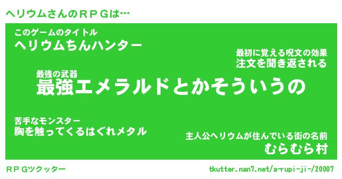 | 男性向けラノベタイトル風あだ名 | 『ヘリウムアートオンライン』 |