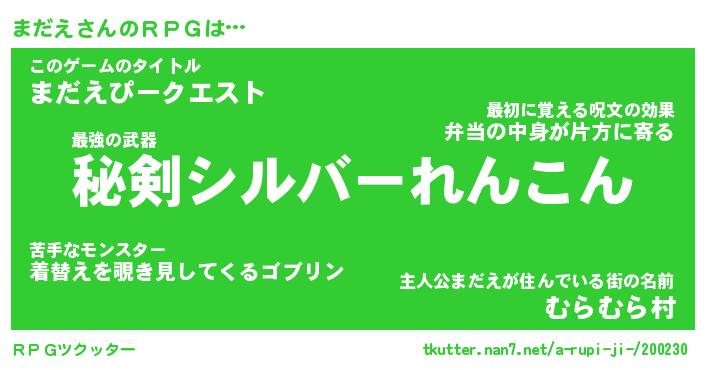 | 男性向けラノベタイトル風あだ名 | 『まだえの憂鬱』 |