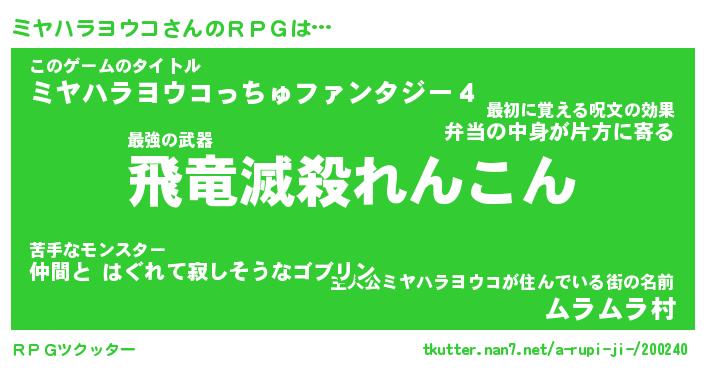 | ファンタジー風あだ名 | 『ミヤフェル』『ファントムミヤス』 |