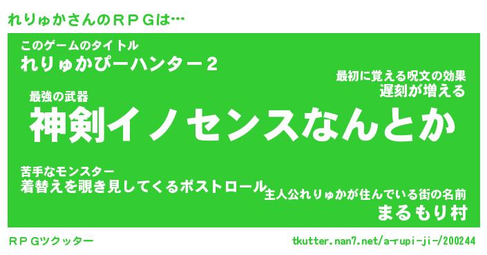 | 伝説のあだ名 | 『不死鳥のスナイパーれりゅか』 |