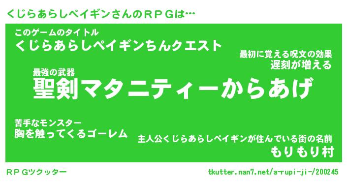 | ヒーロー風カッコイイあだ名 | 『スーパークジラアラシペイギン』 |