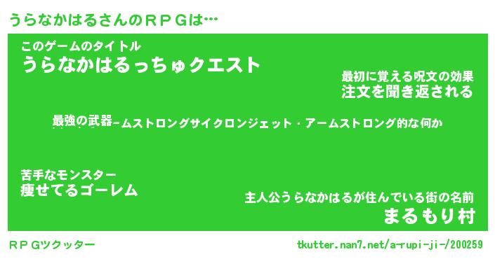 | 男性向けラノベタイトル風あだ名 | 『ウラナカハルアートオンライン』 |