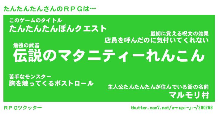 | 胡散臭い通販商品みたいなあだ名 | 『モテモテ間違いなし霊験あらたかなお札…その名も「たんたんたん」』 |