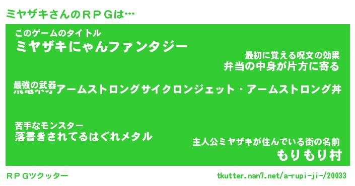 | 男性向けラノベタイトル風あだ名 | 『ミヤザキアートオンライン』 |