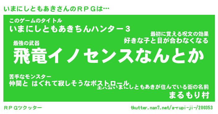 | 肩書あだ名 | 『いまにしともあき御曹司』 |