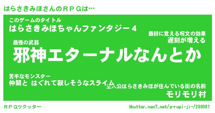 | ヒーロー風カッコイイあだ名 | 『スーパーハラサキミホ』『黄金騎士ハラ』 |