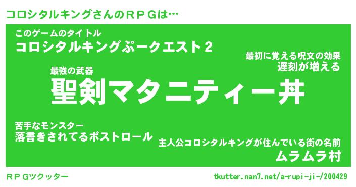 | ツイッター | コロシタルキングさんのツイッターID『renkon_nyan』 |