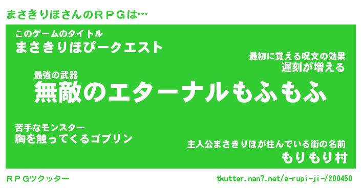 | 伝説のあだ名 | 『封印されし傭兵まさきりほ』 |