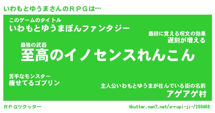 | 男性向けラノベタイトル風あだ名 | 『イワモトユウマアートオンライン』 |