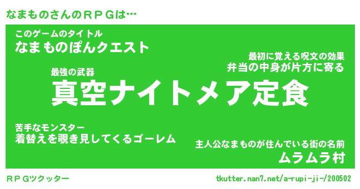 | ファンタジー風あだ名 | 『ナマフェル』『エターナルナマモノー』 |