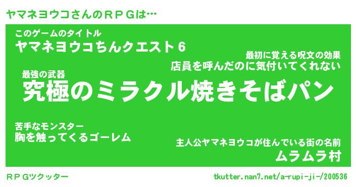 | 男性向けラノベタイトル風あだ名 | 『ヤマネヨウコアートオンライン』 |