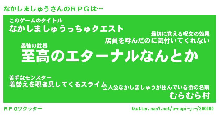 | 男性向けラノベタイトル風あだ名 | 『ナカシマシュウアートオンライン』 |