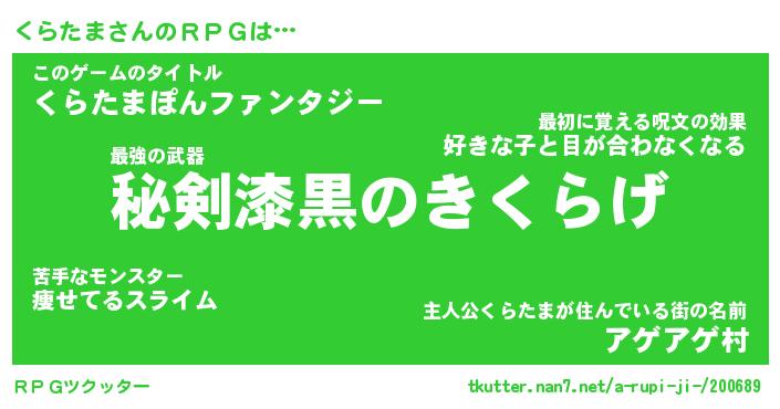 | 男性向けラノベタイトル風あだ名 | 『くらたまの憂鬱』 |