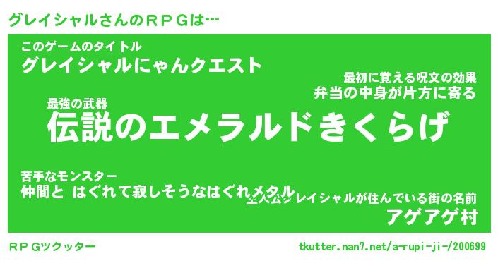 | 男性向けラノベタイトル風あだ名 | 『グレイシャルの憂鬱』 |