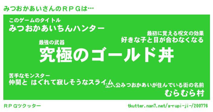 | ヘコむあだ名 | 『みつもー』『なまこ酢』『みつを』 |