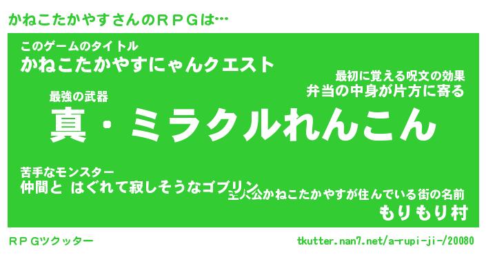 | 男性向けラノベタイトル風あだ名 | 『カネコタカヤスアートオンライン』 |