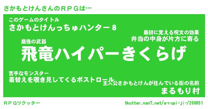 | 男性向けラノベタイトル風あだ名 | 『サカモトケンアートオンライン』 |