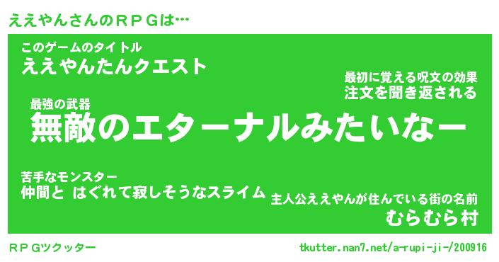 | 男性向けラノベタイトル風あだ名 | 『エエヤンアートオンライン』 |