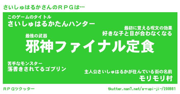 | 胡散臭い通販商品みたいなあだ名 | 『億万長者になれる水晶球…その名も「さいしゅはるか」』 |
