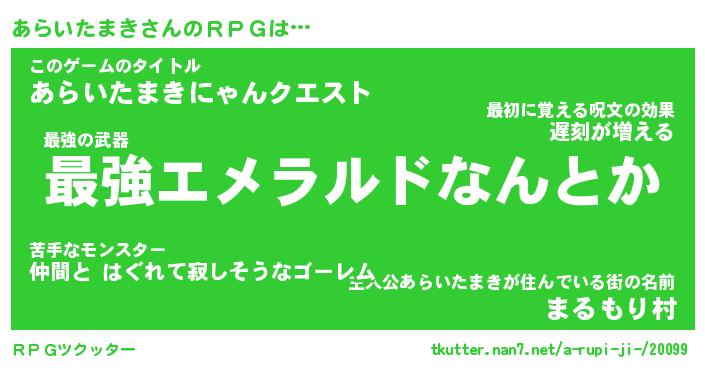 | 男性向けラノベタイトル風あだ名 | 『アライタマキアートオンライン』 |