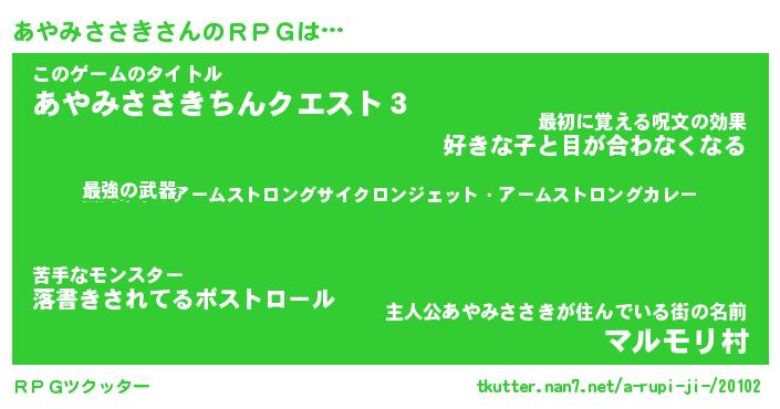 | 男性向けラノベタイトル風あだ名 | 『アヤミササキアートオンライン』 |