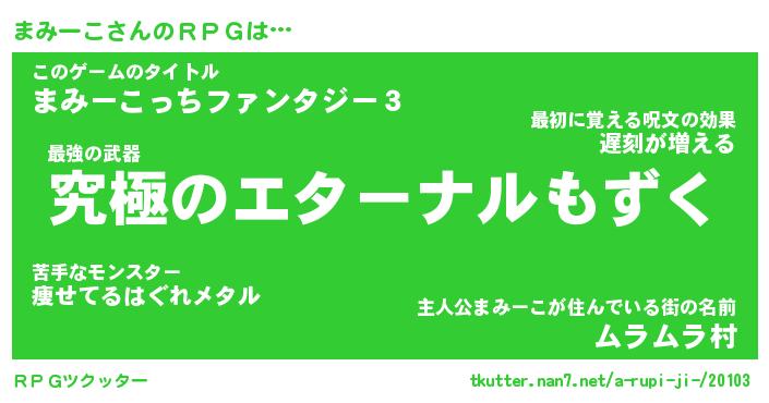 | 男性向けラノベタイトル風あだ名 | 『まみーこの憂鬱』 |