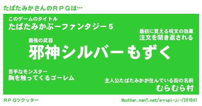 | ファンタジー風あだ名 | 『タバフェル』『エターナルタバタミカー』 |