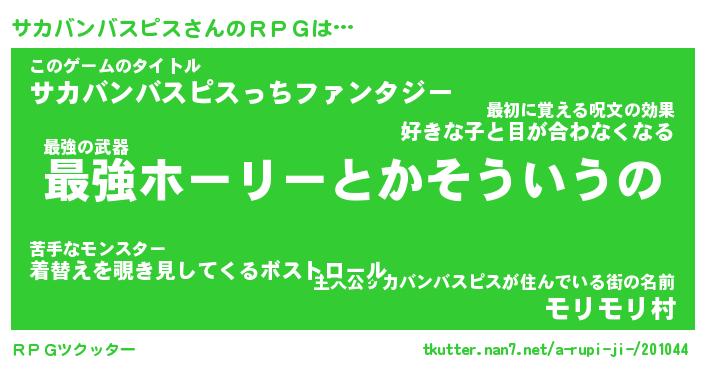 | 男性向けラノベタイトル風あだ名 | 『サカバンバスピスアートオンライン』 |