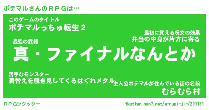 | ファンタジー風あだ名 | 『ポテフェル』『エターナルポテマルー』 |
