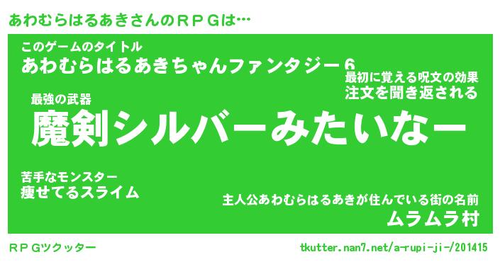 | 男性向けラノベタイトル風あだ名 | 『あわむらはるあきの憂鬱』 |
