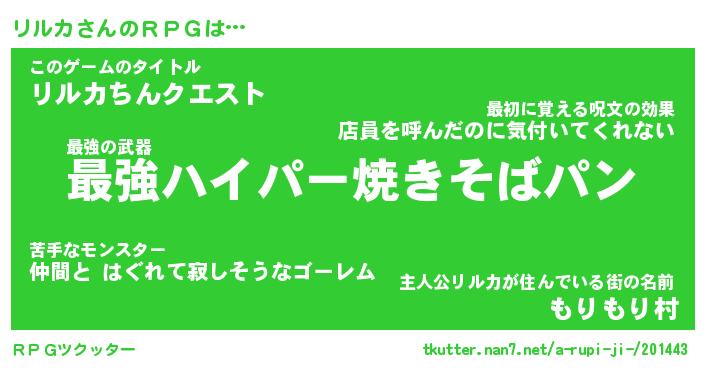 | 意味不明あだ名 | 『ペロリンリルカ』『リルカフォーエバー』 |