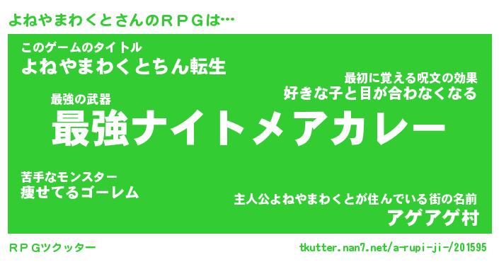 | 男性向けラノベタイトル風あだ名 | 『ヨネヤマワクトアートオンライン』 |