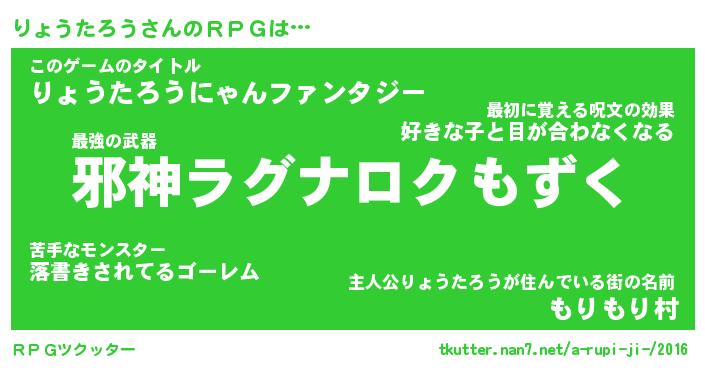 | 男性向けラノベタイトル風あだ名 | 『リョウタロウアートオンライン』 |