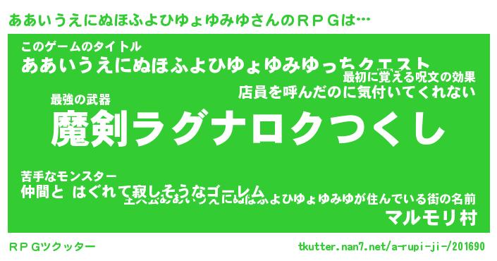 | 伝説のあだ名 | 『伝説の竜騎士ああいうえにぬほふよひゆょゆみゆ』 |