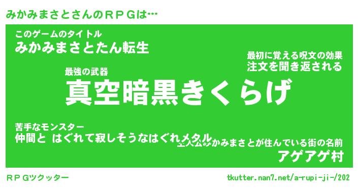 | 胡散臭い通販商品みたいなあだ名 | 『億万長者になれる水晶球…その名も「みかみまさと」』 |